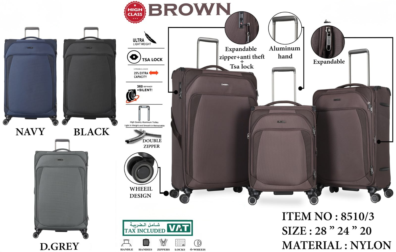 - تأتي ضمن مجموعة حقيبة سفر 3 قطع لتلبية جميع احتياجات السفر