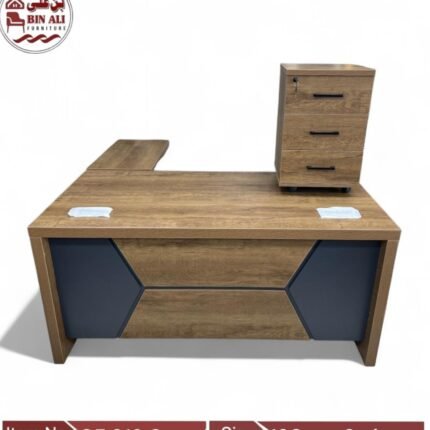 مكتب خشب مع ارجل حديد اضافة كمودينة 3 ادراج